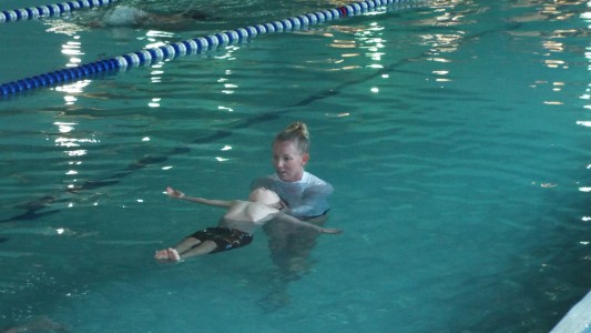 Dylan floating with Miss Alena